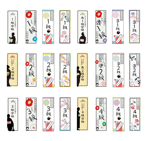 きもの文化検定」の合格をアピールするための1級から4級の千社札を用意しました。